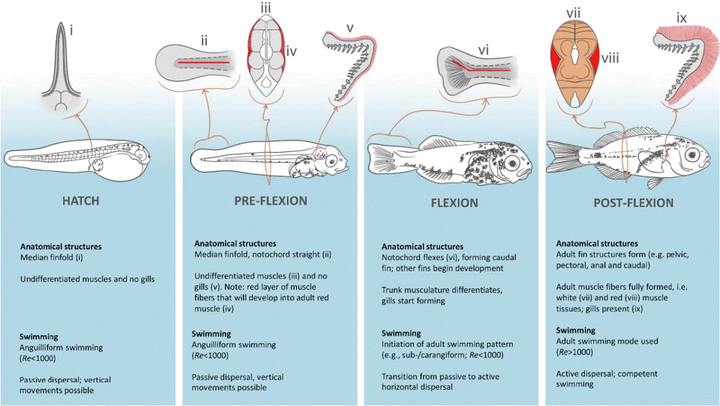 Overview of how swimming capabilities develop throughout early ontogeny in marine fishes. Image credit: Adam T. Downie